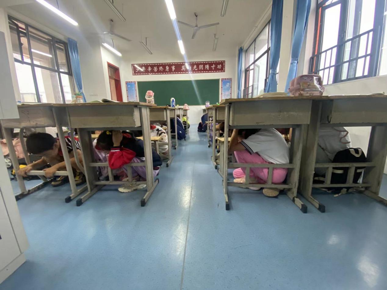 隨著一陣急促而逼真的地震警報(bào)聲驟然響起,整個(gè)校園瞬間進(jìn)入了緊張而有序的應(yīng)急狀態(tài)。各班班主任迅速組織學(xué)生采取正確的避震姿勢(shì),即“伏而待定”,雙手抱頭,躲在課桌下或教室堅(jiān)固的墻角邊,等待進(jìn)一步的疏散指令。隨后,第二次警報(bào)響起,標(biāo)志著疏散階段的開(kāi)始。在老師的帶領(lǐng)下,學(xué)生們按照既定的疏散路線,低姿、快速、有序地撤離到指定的安全地帶。整個(gè)疏散過(guò)程井然有序,無(wú)擁擠、推搡現(xiàn)象發(fā)生,達(dá)到了預(yù)期效果。