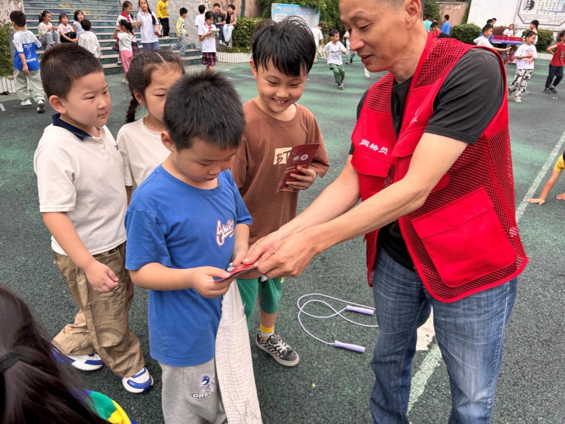 活動現(xiàn)場,五老成員以《中華人民共和國愛國主義教育法》為主題,通過圖片、文字等形式,向?qū)W生們繪聲繪色地講解了國旗、國徽、國歌的含義以及國慶節(jié)的由來。同時通過“你問我答”的游戲形式向?qū)W生們普及國防知識、講述紅色故事,讓他們了解中國的苦難歷史及為建立新中國而浴血奮戰(zhàn)的風(fēng)雨歷程,希望他們不忘國恥、緬懷先烈,最后鼓勵同學(xué)們樹立崇高遠(yuǎn)大的理想,為實(shí)現(xiàn)中國夢而奮發(fā)向上,砥礪奮進(jìn)?;顒咏Y(jié)尾,社區(qū)志愿者來到學(xué)校操場,在學(xué)生們課間休息時間,向?qū)W生們發(fā)放國防動員法律法規(guī)普法手冊,用通俗易懂的語言向他們闡述“沒有強(qiáng)大的國防,就沒有全國人民安寧幸福生活”的道理。