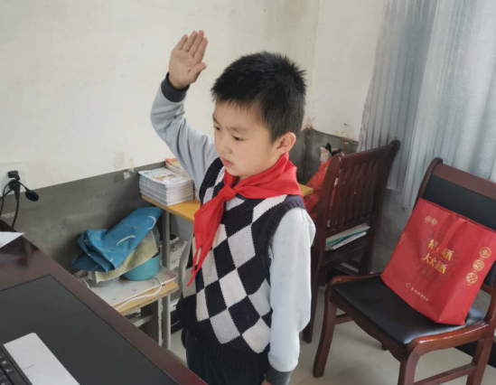 “美麗的祖國,您是我們的母親,您是我們的驕傲,當(dāng)那五星紅旗冉冉升起、迎風(fēng)飄揚時,我們分外激動與自豪,我的祖國,祝您繁榮昌盛,在此向您致敬!”11月11日上午,通過蜀山鎮(zhèn)中心小學(xué)廣播站傳出來的旗下講話回響在整個校園內(nèi)。剛剛在廣播站讀完致辭、放下手中的稿子的三年級學(xué)生李小明眉頭緊鎖、神情嚴(yán)肅,面對著電腦桌面上的“向國旗敬禮”界面,他理順了胸前的紅領(lǐng)巾,挺直了瘦弱的小身板,高高的地舉起右手,行少先隊禮。動作連貫、一氣呵成,他不僅僅是“向國旗敬禮”,更是在表達(dá)對國旗的尊重、抒寫心底的愛國主義情懷。