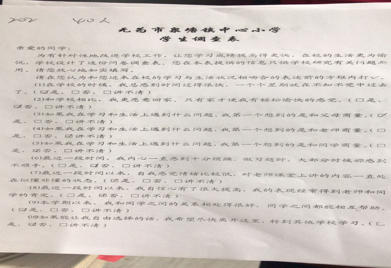 泉塘鎮(zhèn)中心小學(xué)開展學(xué)生心理狀況問卷調(diào)查。