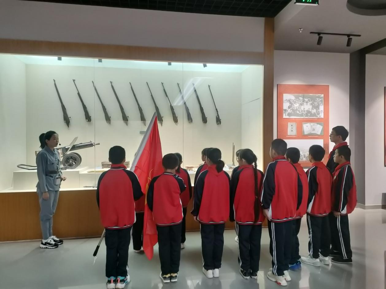 活動在激揚的《中國少年先鋒隊隊歌》中拉開序幕,在紀(jì)念館內(nèi)大家隨著講解員認(rèn)真觀看陳列物品,仔細(xì)聆聽講解員的講解,不時討論交流,看著革命先烈用過的武器、穿過的衣物,歷史瞬間呈現(xiàn)腦海,讓我們明白今天的和平來之不易;隨后大家進入紅色講堂,聆聽紅色故事,追憶革命先烈的光榮歷史,緬懷革命先烈的光輝業(yè)績;最后活動在拍照留念中圓滿結(jié)束。“作為在紅色熱土成長的少先隊員,我們更要傳承革命精神,努力成長為新時代好少年,為中華民族偉大復(fù)興的中國夢接續(xù)奮斗?!奔t廟鎮(zhèn)中心小學(xué)501班王雨同學(xué)說。
