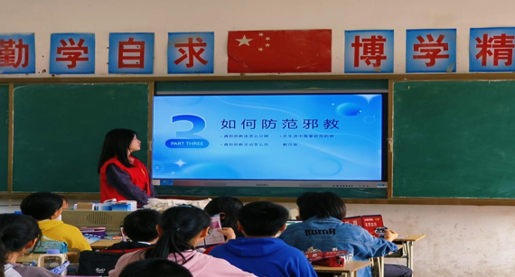 通過(guò)開(kāi)展集中學(xué)習(xí)、培訓(xùn)講座等多種活動(dòng),教育引導(dǎo)學(xué)生和教師充分認(rèn)識(shí)開(kāi)展反邪教宣傳教育的重要意義,提高對(duì)邪教現(xiàn)實(shí)和潛在危害的認(rèn)識(shí),學(xué)習(xí)、領(lǐng)會(huì)、掌握防范邪教工作的基本方針、原則和政策,始終繃緊反邪教這根弦,積極唱響愛(ài)國(guó)主義主旋律,不斷增強(qiáng)反邪教的責(zé)任感和使命感。緊抓課堂,凸顯主渠道作充分發(fā)揮課堂主渠道作用,積極鼓勵(lì)學(xué)校組織開(kāi)展反邪教主題班會(huì)。工作人員利用 PPT 講解、播放警示教育宣傳片和互動(dòng)問(wèn)答等形式讓學(xué)生充分了解什么是邪教、邪教的種類(lèi)、邪教的危害等基本常識(shí),并發(fā)放反邪教宣傳手冊(cè),號(hào)召學(xué)生都行動(dòng)起來(lái),爭(zhēng)做"傳聲筒",將學(xué)到的反邪知識(shí),帶回家講給家人和鄰居聽(tīng)。豐富形式,推活動(dòng)走實(shí)見(jiàn)效。