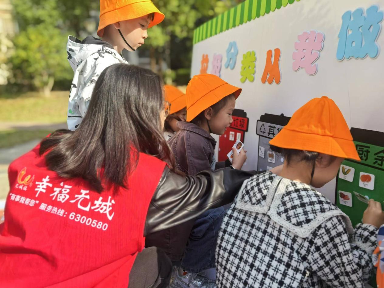 在活動開始前,社區(qū)志愿者向小朋友講解垃圾分類基礎(chǔ)知識,生動形象地將垃圾桶比喻成垃圾的“家”,例如藍(lán)色桶是可回收垃圾的“家”、紅色桶是有害垃圾的“家”等。接著,在志愿者的指導(dǎo)下,讓每個(gè)小朋友嘗試為垃圾們尋找正確的“家”,在實(shí)踐過程中熟悉學(xué)到的分類知識。最后,通過“垃圾分類大富翁”的互動游戲,讓兒童置身于游戲場景,寓教于樂,在游戲的過程中學(xué)習(xí)垃圾分類知識,同時(shí)通過兒童帶動身邊家長,宣傳環(huán)保理念,為后期垃圾分類工作開展夯實(shí)基礎(chǔ)。