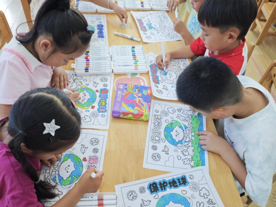 在繪畫環(huán)節(jié),社區(qū)工作人員準備了“環(huán)?!薄皭圩o地球”主題的畫紙,孩子們用七彩畫筆在黑白的畫紙上涂抹出屬于他們心中的生態(tài)藍圖。一幅幅色彩斑斕的畫作,展現(xiàn)了孩子們對美好環(huán)境的向往和憧憬?;顒娱g隙,工作人員分發(fā)零食,孩子們圍坐分享,在溫馨氛圍中增進友誼。