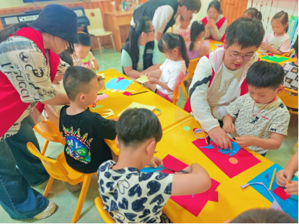 活動的最后,是讓孩子動手動腦的環(huán)保手工創(chuàng)作環(huán)節(jié)。孩子們在大學(xué)生志愿者的幫助下,用彩色卡紙,精心裁剪、折疊、粘貼,制作出一個個色彩斑斕的“環(huán)保小衛(wèi)士”徽章。他們發(fā)揮自己的奇思妙想,在徽章上繪制出各種與垃圾分類、環(huán)保相關(guān)的圖案或者文字,讓孩子們環(huán)保創(chuàng)新意識和動手能力在作品中得到體現(xiàn)。