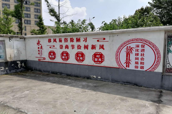 破舊俗,倡新風(fēng)。為倡導(dǎo)文明健康的生活理念,近年來(lái),無(wú)為市福渡鎮(zhèn)大力開(kāi)展移風(fēng)易俗宣傳教育活動(dòng)。利用公益廣告、文化墻、村規(guī)民約等群眾喜聞樂(lè)見(jiàn)的形式,讓百姓樂(lè)看易學(xué)好懂。正是因?yàn)檫@些老百姓易接受的宣傳方式讓群眾喜聞樂(lè)見(jiàn),起到良好的宣傳教育效果。公益廣告接地氣、傳美德,倡導(dǎo)移風(fēng)易俗,弘揚(yáng)時(shí)代新風(fēng),深受老百姓的喜愛(ài)。公益廣告將家風(fēng)家訓(xùn)、尊老愛(ài)幼、勤儉節(jié)約、倡導(dǎo)環(huán)保等一句句道德文字采用三字經(jīng)、好人故事、名人名言等圖文并茂的形式,進(jìn)行傳播弘揚(yáng),成為引領(lǐng)文明鄉(xiāng)風(fēng)的有效載體。引導(dǎo)市民從自身做起,從小事做起,遠(yuǎn)離陳規(guī)陋習(xí),倡導(dǎo)科學(xué)文明的生活方式,做孩子的表率,鄰里身邊的好榜樣,弘揚(yáng)時(shí)代新風(fēng)尚。