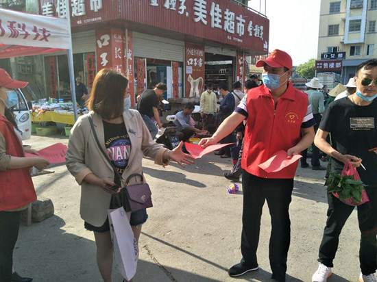 嚴(yán)橋鎮(zhèn)新時(shí)代文明實(shí)踐所(站)志愿者入戶宣傳和集市集中宣傳相結(jié)合