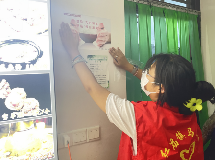 活動中,志愿者深入轄區(qū)內(nèi)餐飲經(jīng)營場所張貼“倡導(dǎo)‘文明餐桌’,拒絕‘舌尖浪費(fèi)’”提示語,倡導(dǎo)經(jīng)營業(yè)主自覺參與“文明餐桌”行動。同時,志愿者走村入戶向居民發(fā)放《文明過節(jié)倡議書》,引導(dǎo)居民在傳統(tǒng)節(jié)日期間摒棄大吃大喝、鋪張浪費(fèi)等不文明不健康的過節(jié)陋習(xí),珍惜糧食、節(jié)約用餐、文明過節(jié)。