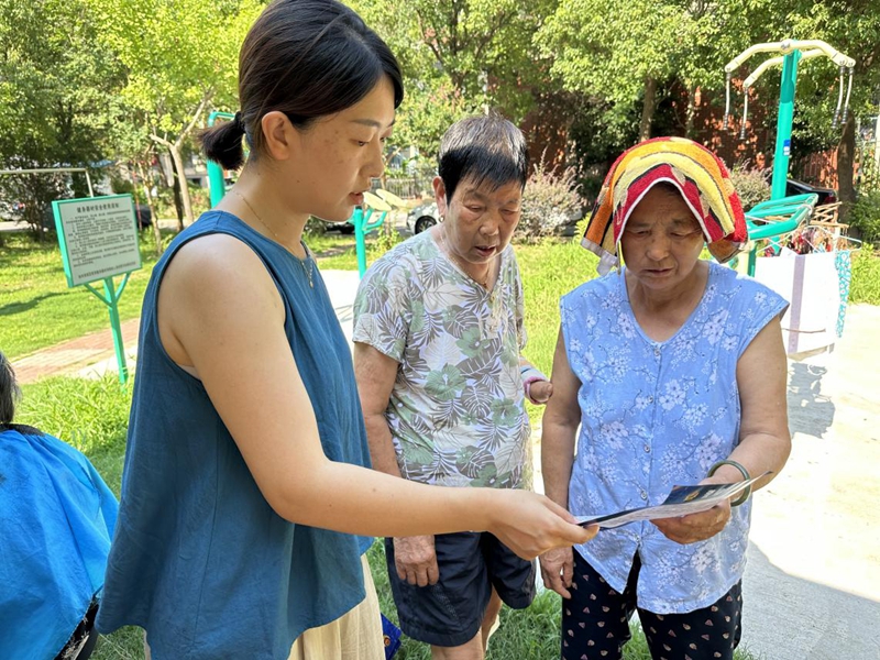 社區(qū)工作人員發(fā)放宣傳手冊