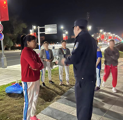 在接到居民戶反映廣場舞擾民,練舞的音量過大,經(jīng)常操練到深夜,嚴重影響學生學習,影響居民正常生活。文景社區(qū)物業(yè)辦工作人員立即聯(lián)系社區(qū)民警,在夜幕降臨時來到了轄區(qū)廣場。細心勸導、耐心勸說,減少分貝。社區(qū)志愿者和民警與廣場內(nèi)的舞蹈領隊逐一進行勸導,提醒他們在進行娛樂活動時減少音樂音量,縮短廣場舞時間,做到不妨礙不擾民。領隊們紛紛表示愿意減少音量,少一分噪聲,多一份理解,共同維護鄰里和諧。