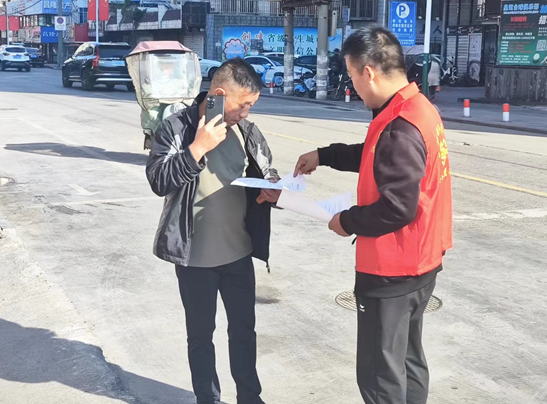 “大爺啊,我們社區(qū)現(xiàn)在推行垃圾分類,就是把我們平時生產(chǎn)的垃圾進(jìn)行一個分類投放,垃圾主要分為可回收物、廚余垃圾、有害垃圾和其他垃圾四類,像您平時家里的廢紙啊廢布料就是可回收垃圾,家里沒電的電池、燈泡啊就是有害垃圾,做好垃圾分類投放呢可以減少土地污染和環(huán)境污染,是一項(xiàng)有著長久效益的好事呢。”在文景社區(qū)轄區(qū)內(nèi)的黨建廣場,社區(qū)志愿者用通俗易懂的語言,向正在享受著冬日暖陽的居民介紹著垃圾分類的小知識,居民在你一句我一句的聊天中加深了對于垃圾分類的意識。