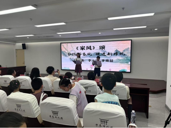 隨后大學(xué)生志愿者傾情演唱了原創(chuàng)歌曲《家訓(xùn)里的光》,他們以飽滿的熱情和富有時(shí)代氣息的音樂(lè)語(yǔ)言,將祖輩相傳的家訓(xùn)轉(zhuǎn)化為年輕人易懂的節(jié)奏,唱響了他們對(duì)優(yōu)良家風(fēng)的深刻理解和青春禮贊。