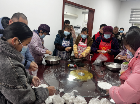 活動現(xiàn)場,大家分工明確,你和面、我包餡,熱鬧非凡?!皽珗A餡不要弄太多,面要多搓一會……”居民王阿姨開心地向在場的大家傳授包湯圓的經(jīng)驗。大家一起揉面團,放餡料,搓捏成型,在大家的共同努力下,不一會的工夫,湯圓似大珠小珠落玉盤般齊齊亮相,大家在歡聲笑語中一邊包著湯圓,一邊探討著元宵節(jié)習俗及元宵美食,互相交流著搓湯圓的心得,現(xiàn)場一片其樂融融,為元宵節(jié)加上了滿滿的“儀式感”。