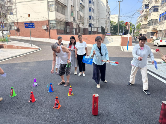 社區(qū)工作人員在現(xiàn)場(chǎng)開(kāi)設(shè)了套圈、投壺等既具趣味性又適合老年人參與的運(yùn)動(dòng)項(xiàng)目。居民們站在指定位置,手持套圈和箭矢,嘗試將游戲道具投入遠(yuǎn)處的目標(biāo)物中。隨著一個(gè)個(gè)套圈和箭矢準(zhǔn)確地落在目標(biāo)物上,現(xiàn)場(chǎng)不時(shí)爆發(fā)出陣陣掌聲和歡笑聲。這一環(huán)節(jié)不僅讓居民們體驗(yàn)到了傳統(tǒng)游戲的魅力,還增進(jìn)了彼此之間的友誼。