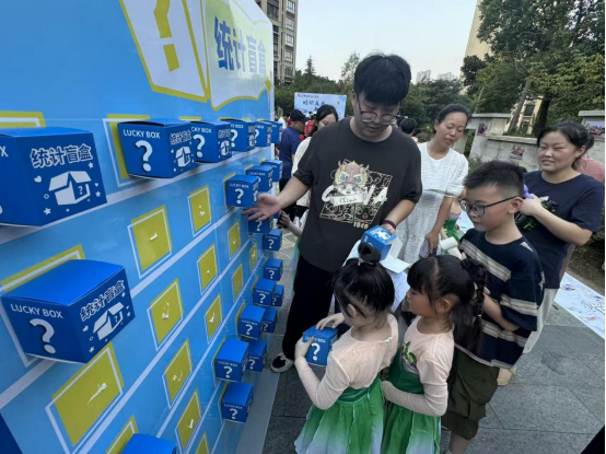最熱鬧的當(dāng)數(shù)鄰里集市,8個(gè)特色攤位讓居民“逛得盡興、玩得投入”?!班徖锕怖L”長卷畫前,居民們手持畫筆,將社區(qū)標(biāo)志性建筑、鄰里互助場景繪于紙上,共同勾勒“我們的社區(qū)故事”“磁聚美好親子創(chuàng)藝”“珠連童趣手作傳情”攤位,家長與孩子合作制作冰箱貼、串珠飾品,在動(dòng)手過程中增進(jìn)親子默契;國家統(tǒng)計(jì)局無為調(diào)查隊(duì)設(shè)置的“統(tǒng)計(jì)法治盲盒”“統(tǒng)計(jì)拼圖大挑戰(zhàn)”“我和統(tǒng)計(jì)合個(gè)影”打卡墻,讓居民在抽盲盒、拼拼圖、拍照片的互動(dòng)中,輕松學(xué)習(xí)統(tǒng)計(jì)知識(shí);“法治進(jìn)社區(qū)”咨詢臺(tái)安排專業(yè)人員,為居民解答婚姻家庭、勞動(dòng)糾紛等法律難題,并發(fā)放針對(duì)性普法資料;“平安‘袋’言人”手繪區(qū),居民在帆布袋上繪制交通安全、防溺水、反電詐畫面,將安全警示融入創(chuàng)意創(chuàng)作,實(shí)用又有意義。