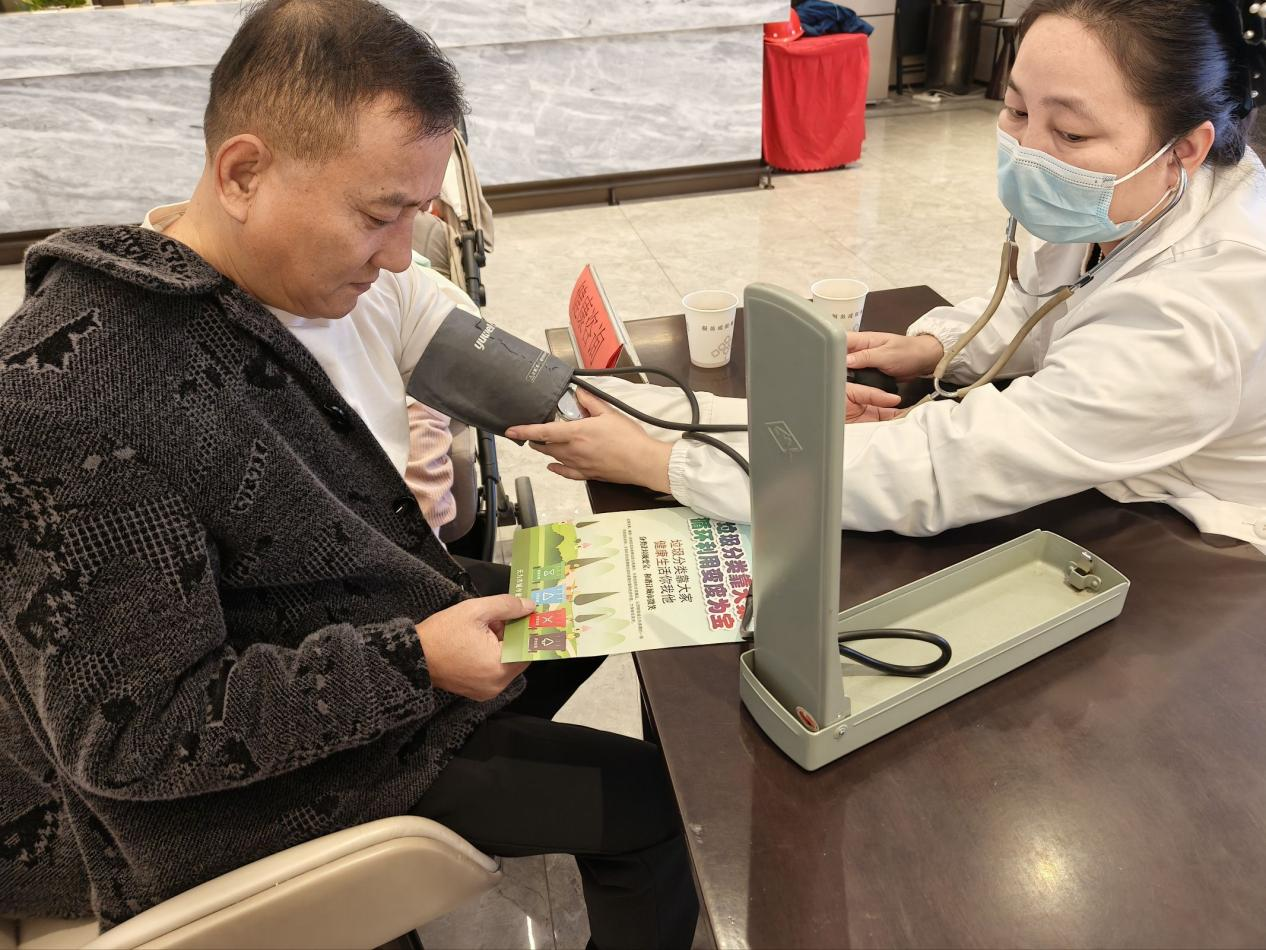 義診桌前,醫(yī)生耐心接診,為居民提供免費(fèi)血壓、血糖檢測,并針對常見慢性病、老年健康護(hù)理等問題逐一解答;一旁的垃圾分類宣傳人員向候診居民講解分類知識,用通俗語言講解分類標(biāo)準(zhǔn)與意義,引導(dǎo)居民掌握正確投放方法。參與居民的張大哥說道:“既看了病,又學(xué)了知識,這樣的活動很實(shí)用?!?/p>