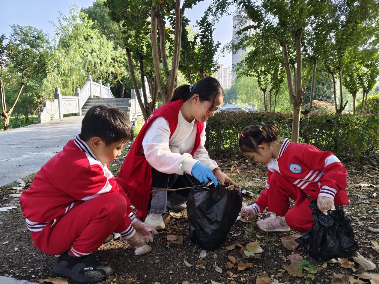 活動伊始,社區(qū)志愿者手持手套、垃圾夾子和垃圾袋,走進(jìn)幼兒中間,“小朋友們,這些‘小幫手’能幫我們做什么呀?”志愿者的提問瞬間點(diǎn)燃現(xiàn)場氛圍,孩子們紛紛舉手搶答。隨后,志愿者與幼兒園老師們教孩子們戴手套要像“穿小襪子”一樣,把手指一一對應(yīng)套好;用垃圾夾子時,力度要輕得像“夾小餅干”,既不夾碎“餅干”,又能穩(wěn)穩(wěn)抓住垃圾;撐開垃圾袋則要變成 “張開小口袋”,讓垃圾乖乖 “住進(jìn)去”……掌握手套、垃圾袋、夾子的正確用法后,“垃圾大作戰(zhàn)”正式開啟,志愿者與老師全程引導(dǎo),不僅提醒孩子們區(qū)分垃圾種類,還及時解決操作難題。遇到尖銳物品或難以處理的垃圾,孩子們會主動向成人求助,嚴(yán)守“安全第一”原則。活動中,孩子們彎腰撿拾、認(rèn)真分類,隨著一個個垃圾袋被裝滿,原本散落著落葉、塑料屑的綠化帶逐漸恢復(fù)整潔,一張張稚嫩的臉上滿是專注與自豪。