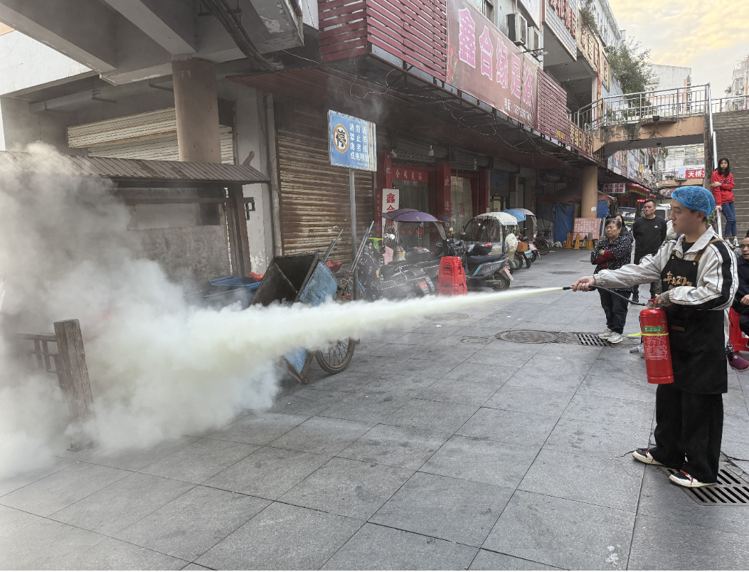 培訓(xùn)結(jié)束后,消防員還進行了現(xiàn)場模擬演練,重點向居民講解滅火器的使用方法?!按蠹乙涀∫惶帷⒍?、三噴這個口訣…”隨后,消防員向大家詳細示范了手提式干粉滅火器的操作方法以及如何迅速逃生等消防應(yīng)急知識,并指導(dǎo)居民商戶進行實際操作,進一步提升居民的消防安全技能。