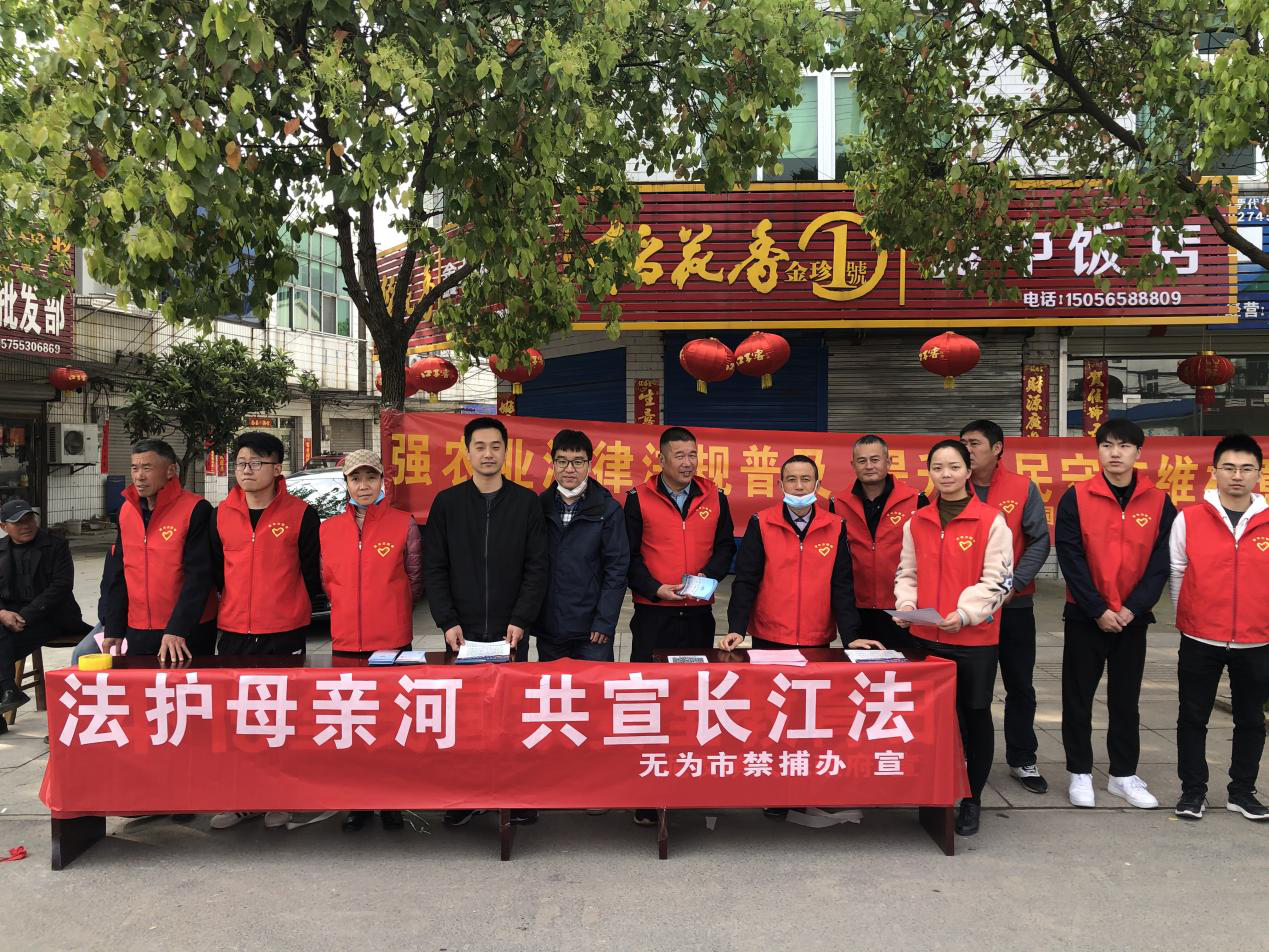 為貫徹落實(shí)長(zhǎng)江“十年禁漁”重要決策部署,有效保護(hù)長(zhǎng)江流域水生生物資源和水域生態(tài)安全,維護(hù)生態(tài)平衡,提高沿江社區(qū)居民保護(hù)長(zhǎng)江生態(tài)環(huán)境的意識(shí),4月15日,無(wú)為市禁捕辦與泥汊鎮(zhèn)“守護(hù)長(zhǎng)江”新時(shí)代文明實(shí)踐志愿服務(wù)隊(duì)聯(lián)合組織開(kāi)展“法護(hù)母親河,共宣長(zhǎng)江法”——送法進(jìn)社區(qū)活動(dòng)。