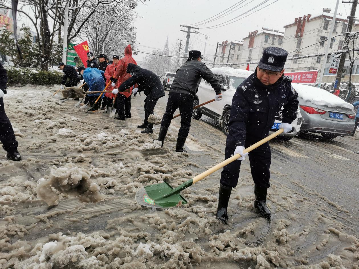 無為市公安局志愿服務隊組織志愿者近二百人,在無為城區(qū)主干道上積極除冰鏟雪,指揮疏導交通