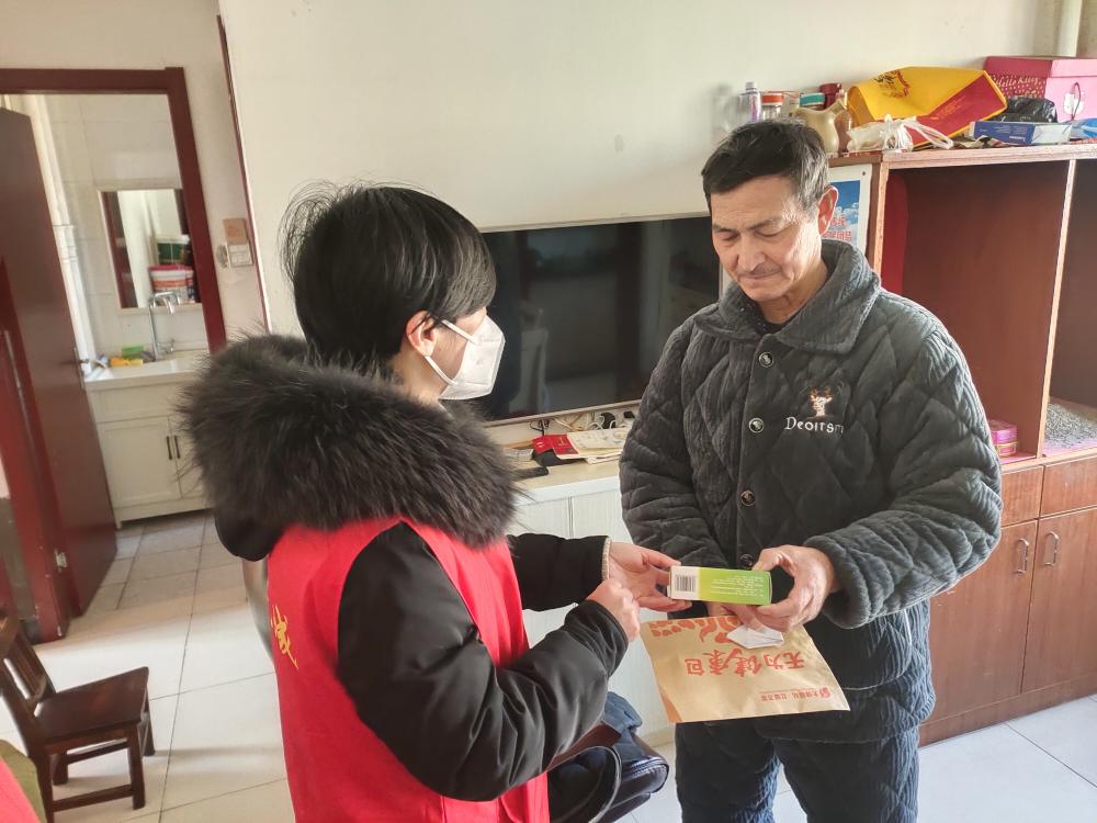 雙橋社區(qū)惠民園小區(qū)是拆遷安置和政府廉租小區(qū),居住了大量的孤寡老人和困難戶,近日,無城鎮(zhèn)組織委員劉建美、雙橋社區(qū)黨總支書記徐文一行組成的“春風(fēng)送暖志愿小分隊”,對照社區(qū)網(wǎng)格員摸排反饋的重點人員信息臺賬,逐門逐戶開展“黨員敲門行動”,為小區(qū)里17戶低保戶、孤寡老人等困難群體送去包含退燒藥物、口罩等防疫物資的“健康大禮包”,并仔細(xì)叮囑藥物禁忌癥狀和用法用量。