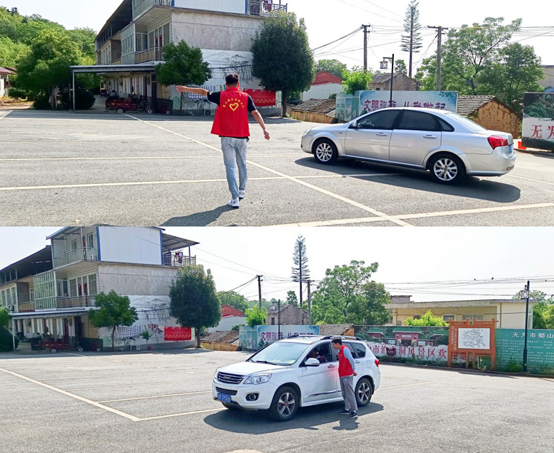 圖為志愿者在停車場引導游客有序停放車輛