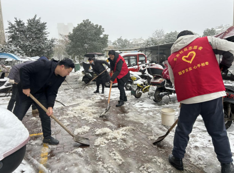 濱湖社區(qū)聞雪而動,第一時間開展“鏟雪除冰·志愿紅在行動”清雪除冰活動。志愿者們身著紅馬甲,不畏嚴寒,團結(jié)協(xié)作,配合默契,有序清理小區(qū)主干道路積雪,為轄區(qū)居民掃出“安全路”。